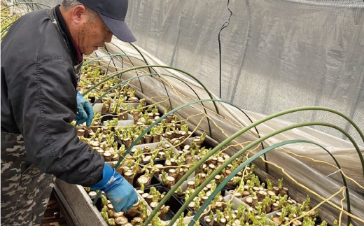 冬の間はビニールハウスで促成栽培され、春を先取りする山菜の王様「たらの芽」として育まれます。